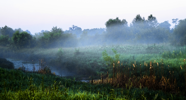 В лугах летний туман.