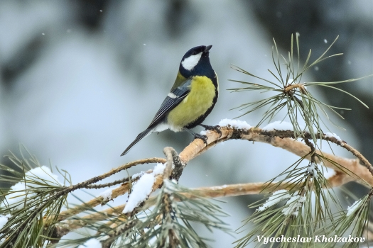 Синица в лесу зимой