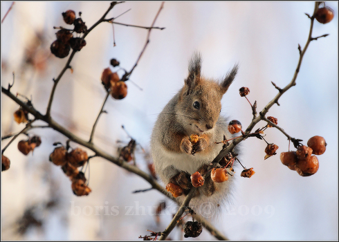 все та же белка, что и во всех предыдущих работах серии "я-белка!". Сейчас у этой барышни появились малыши и по яблоне она больше не лазит. Кстати, яблоню эту чуть не спилили осенью, ибо она якобы является аварийным деревом, которое портит внешний вид дома.
