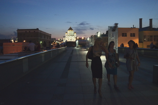 Три подруги гуляли вечером по городу