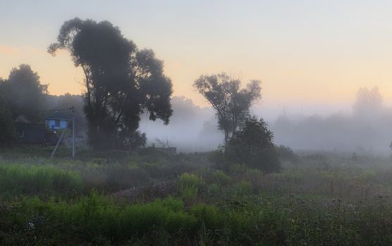 У деревни туман