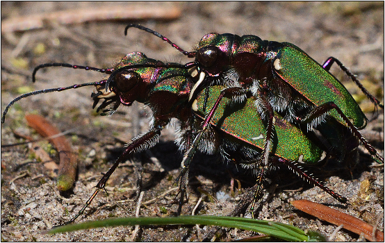 Скакун полевой - Cicindela campestris. До 16 мм в длину. Живет на травянистых участках. Вспугнутый, летит, но на короткое расстояние. Активный хищник, нападающий на мелких животных.