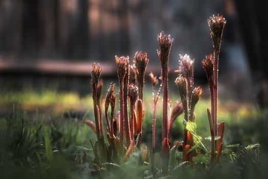 Молодые побеги цветов пиона.