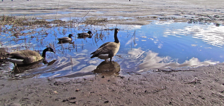 К уткам в гости пожаловала пара канадских гусей. Финляндия. Хельсинки, Вуосари.