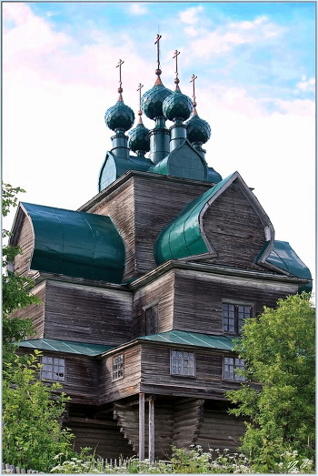 Когда и кем первоначально основан Нелазский приход никому неизвестно. Храмов два: один деревянный в честь Успения Пресвятой Богородицы, а другой каменный в честь Святого Архистратига Божия Михаила. Деревянный храм построен в 1694-м году тщанием прихожан неизвестно с чьего благословения. Первоначально он стоял без фундамента и был необшит снаружи, а покрыт был дранкою чешуеобразно. В 1856-м году очень обветшал. Крыша дала течь и храм накренился к югу. В этом году прихожане поставили его на фундамент из дикого камня, вынувши снизу три венца бревен. Концы бревен, на которых галерея, прогнили, и потому их обрезали, через это галереи стали поуже. Тесом обшита в 1853 году. Иконостас новый сделан живописцем Андреем Федоровым Смирновым в 1859 году за 700 рублей. Престолов -один.