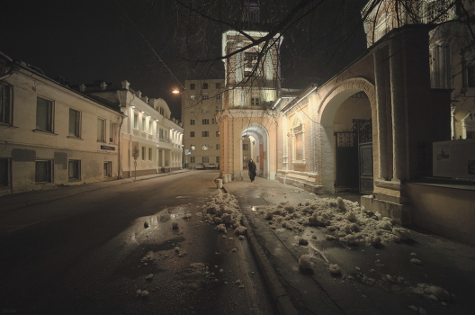 Март. Таяние остатков снега в переулке.
