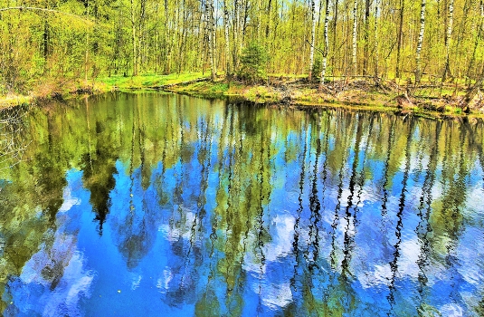 "На дне я вижу нездешний мир, Весенний зеленый лес. И отражается, как сапфир, В реке синева небес ..." А.Кывыржик