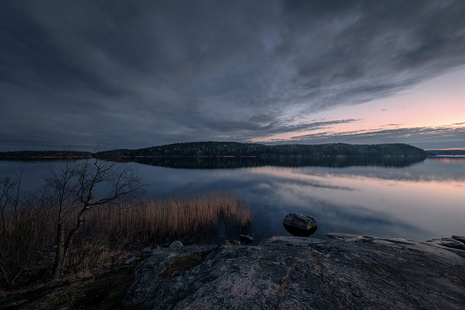 Вечернее закатное солнце попыталось пробиться в щель под низкую облачность у горизонта, но тут же было прижато новым отрядом суровых карельских облаков.