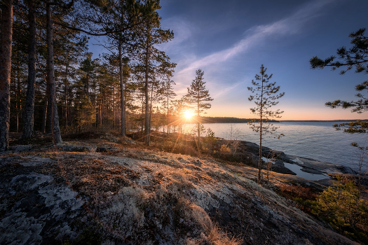 В вечерних лучах солнца, перед закатом, мягкий, северный ковер из мхов и лишайников играет теплыми оттенками, как нарядная попона на каменной спине могучего коня.