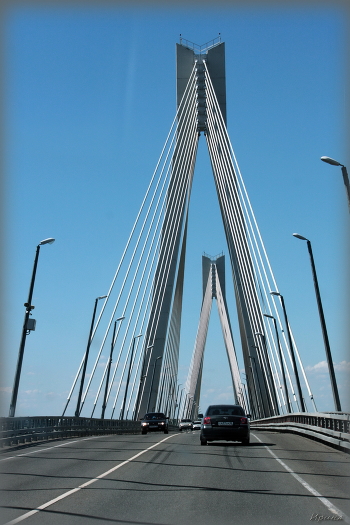 Вантовый мост в районе Мурома через Оку.связывает Нижегородскую и Владимирскую области.Сегодня он считается одним из наиболее красивых вантовых мостов в мире.