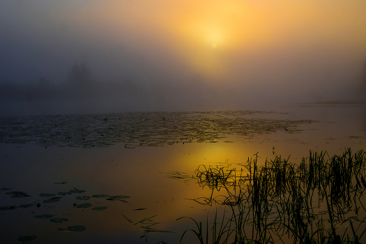 Туманное утро на озере Сосновое. Мещера.