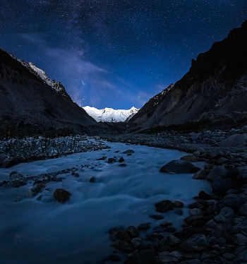Река Черек Безенгийский, а на горизонте белоснежная стена Безенгийская. Начало июня, 2021 г. Кабардино-Балкарский высокогорный заповедник. Из фотопроекта «Кавказ без границ».