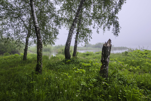 Берёзы на берегу. Июнь