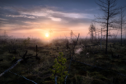 Окутанное туманом болото встречало рассветное солнце. Временами слышался хруст ветки и казалось что где-то там, в тумане, шевелились контуры нечисти, издревле обитавшей в этих местах.