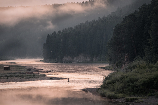 На рассвете отъявленные кыновские рыбаки надевают болотники и выходят на Чусовую. Нынче по перекатам реку можно перейти в брод.