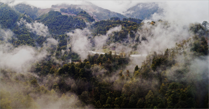 Облака на склонах гор. Окрестности Роза-Хутора.