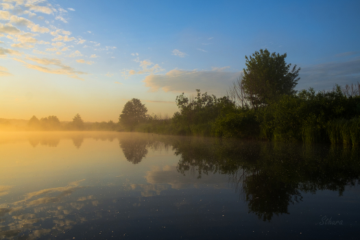 На заре.