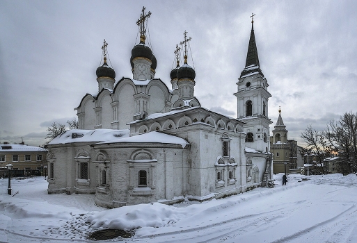 Москва. Здание храма было построено в 1514-1516 годах по проекту (предположительно) архитектора Алевиза Фрязина (Нового) и неоднократно перестраивалось. Панорамная съёмка.